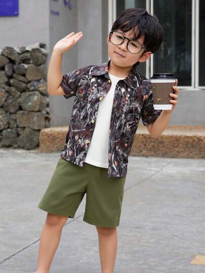 SHEIN 2 件套年轻男孩休闲度假舒适套装 - 彩色 - 查看 1