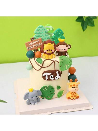 2件/8件/套野生丛林动物蛋糕装饰长颈鹿大象狮子老虎蛋糕动物生日派对装饰 - 彩色 - 查看 11