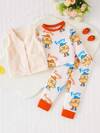 SHEIN 2件套女婴纯色针织开衫和针织连体衣套装(含帽子)