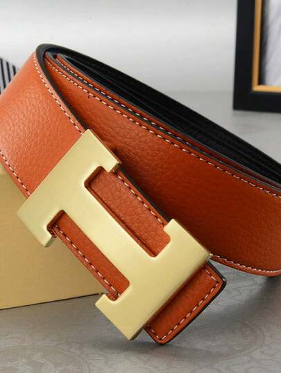 3.3厘米宽男士高品质PU皮革腰带 - 时尚黑色,搭配银色合金扣,纹理图案,表面光滑,双面可用 - 经典字母设计,适合正式和休闲场合穿着 - 彩色 - 查看 13