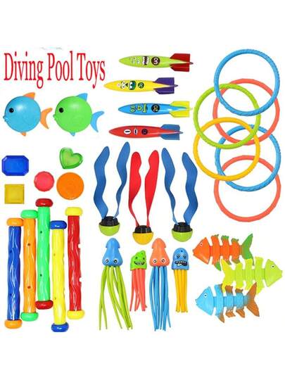 3/4/5/6/8/24 件游泳池玩具夏季潜水玩具水下潜水玩草玩具游泳屏气锻炼工具,儿童夏季游泳池鲨鱼形潜水玩具,水下抓取游戏玩具,夏季潜水池下沉环套装,泳池玩具,儿童玩具,泳池,泳池玩具,沙滩玩具 - 彩色 - 查看 25