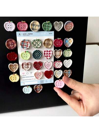 3/5/8/10/12个复古格子纽扣磁性装饰冰箱贴,新奇冰箱贴纸,适用于家庭厨房办公室白板装饰,冰箱厨房磁贴 - 彩色 - 查看 13
