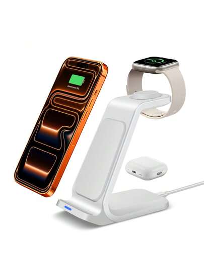 三合一充电站,15W无线充电支架,多功能快充,兼容 17/16/15/14/13/12/11 Pro Max、Ultra 11/10/9/8/7/6/5/4/SE/3/2、Pro 4/3/2,便携式充电底座 - 彩色 - 查看 1
