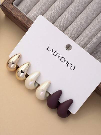 3 对经典简约水滴设计耳环套装,适合女性日常佩戴 - 多色6件套裝 - 查看 1