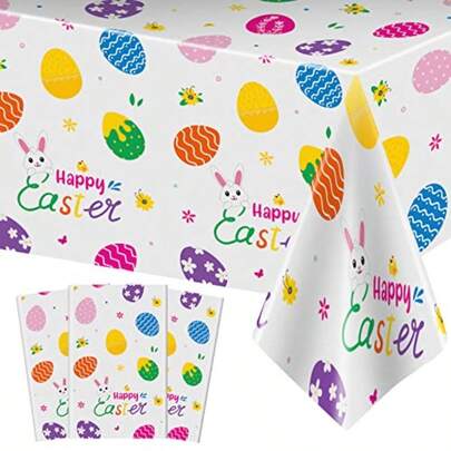 3 Pcs Easter Tableclot-Appy Easter Bun Table Cover Disable Plastic Rectangle Flower Colorful Eggs Table Clot Sp Day Tab Rations And Party Supplies Frs 54 X 108 Inc