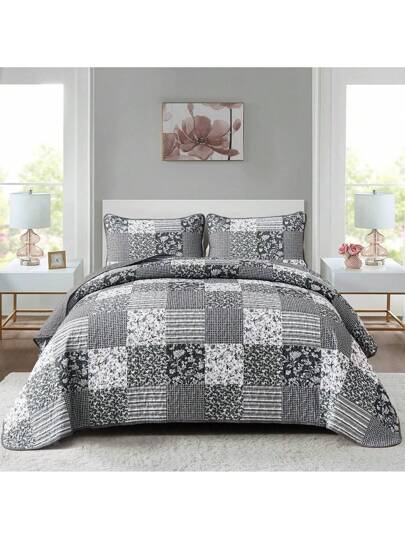 3 Pieces Black Grey Boho Queen King California King Size Reversible Bedspread Coverlet Set For All Season Soft Microfiber Bedding Set Pillowcase,Home Bed Room Decor, Christmas Day Gifts - 黑色 灰色 - 查看 1