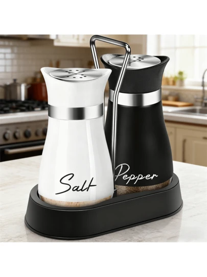 3件套(支架+2罐)盐胡椒罐调味瓶盐瓶胡椒瓶可做圣诞礼物厨房用品多种颜色可选厨房家用调味瓶厨房底部调味瓶 - 彩色 - 查看 1