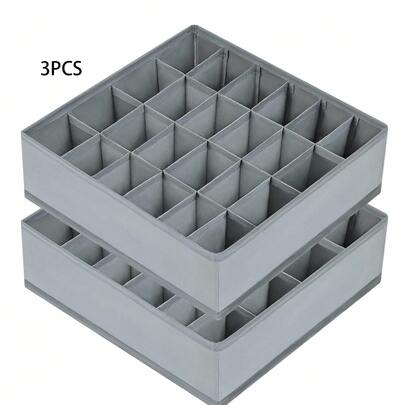 3 件套袜子抽屉收纳分隔架,内衣收纳架,20 格衣柜收纳架和储物收纳架,可用于存放袜子、手帕、领带、腰带(灰色)