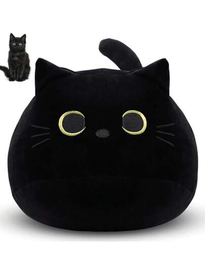 3 种尺寸可爱黑猫毛绒枕头公仔软玩具猫咪可爱填充动物玩偶动漫猫咪毛绒玩具高品质儿童礼物玩具男孩女孩朋友房间装饰情人节礼物万圣节礼物 - 黑色 - 查看 1