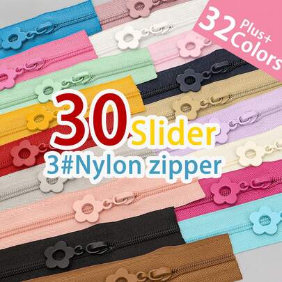 30种颜色,177英寸3号尼龙拉链,配20个配套拉链头,适合家庭缝纫DIY拉链更换
