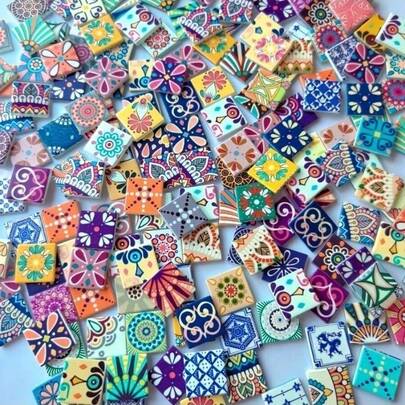 每包300克/10.6盎司,多色混合方形马赛克熔融玻璃装饰品,DIY工艺材料,适用于客厅、厨房、浴室家居装饰,DIY创意手工材料 - 新款混300 - 查看 1
