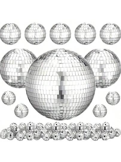 30个银色迪斯科球 - 反光玻璃球,适合70年代主题派对、毕业典礼、生日等场合 - 适合任何庆祝活动装饰、复古派对装饰 | 耐用派对装饰、迪斯科装饰、圣诞装饰、家居圣诞礼物、圣诞装饰
