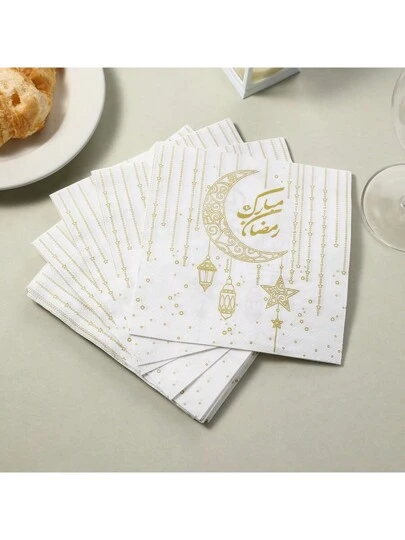 33*33cm 斋月双层一次性纸巾,柔软、舒适、吸水 - 适用于斋月派对餐桌装饰和用餐 - 白色 - 查看 8