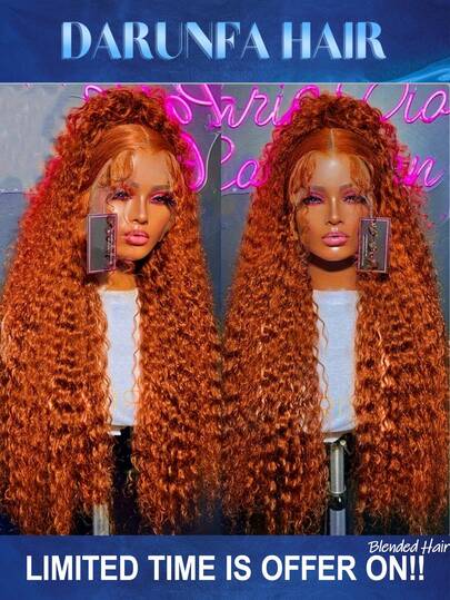 34英寸 200%密度 混合真人发假发 预先拔毛 13X4HD 深波浪蕾丝前假发 女士真人发 12A卷曲前假发 真人发 漂白发结 带婴儿发 #350 姜黄色 - S350 - 查看 1