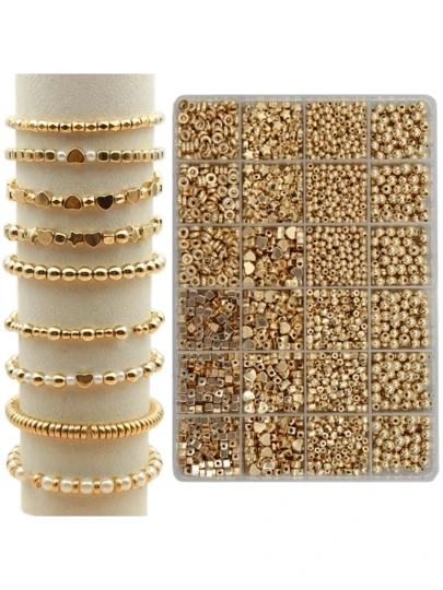 3800颗4-7毫米心形五角星隔珠。隔珠,亚克力材质。24格盒装。DIY手链、项链、珠宝首饰。适合初学者和专业人士。装饰珠 - 金色 - 查看 7