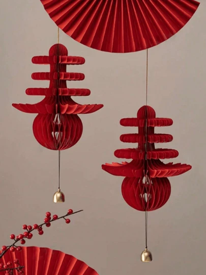 3D蜂窝灯笼装饰套装,红色纸蜂窝汉字装饰,中国新年装饰品,新年礼物,新年派对装饰,家居装饰,房间装饰,墙面装饰 - 紅色 - 查看 8