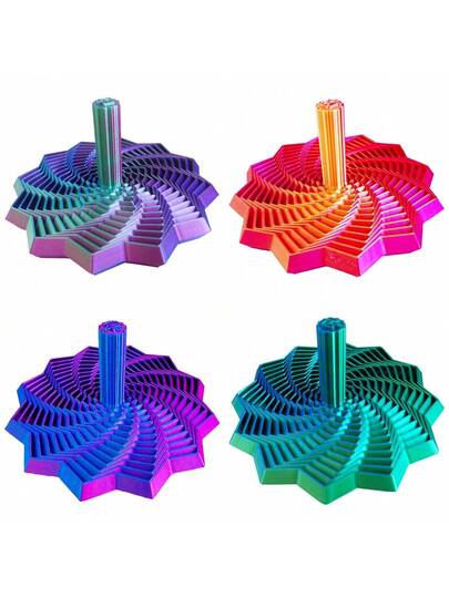 3D打印扩展感官不安星,分形不安12多边形带手柄,彩色旋转螺旋设计,减压桌面多边形办公室和家庭派对及游戏用品 - 彩色 - 查看 8