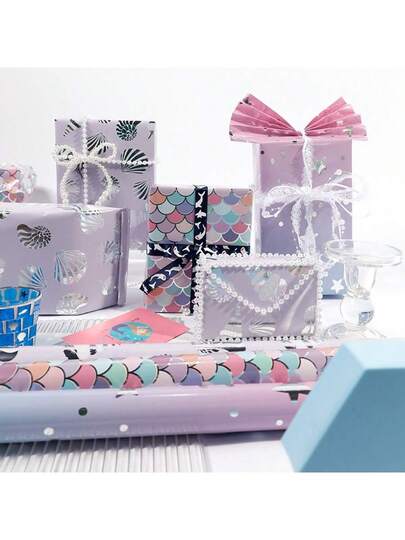 3M 9.84英尺*16.93英寸生日快乐派对礼品包装纸、情人节礼盒、日常海洋元素光面铝箔纸