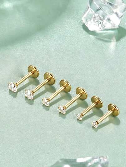 3对14K镀金CZ内螺纹平底耳钉,不锈钢低过敏性唇鼻钉,鼻孔、耳屏、耳廓软骨穿孔饰品,男女通用,返校日常佩戴