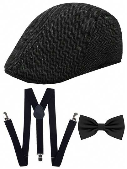 Forever & Moment 1920年代主题男士服装配饰三件套,包括:费多拉帽、盖茨比帽、可调节吊带、领结,适合角色扮演、生日派对、婚礼、鸡尾酒会、晚宴等场合。 - 彩色 - 查看 1
