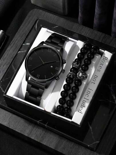 3件套男士不锈钢石英表带组合套装,商务复古罗马数字刻度简约表盘,带日历功能,适合日常佩戴、派对装饰、父亲节、生日等节日,是送给朋友和父亲的理想礼物。