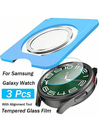 3 片钢化玻璃适用于三星 Galaxy Watch Ultra 8 7 6 FE Classic 5 Pro 4 40 毫米 43 毫米 44 毫米 47 毫米屏幕保护膜带对齐工具简易安装套件玻璃膜 - 3pcs - 查看 1