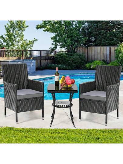 3Tlg, Rattan Garden Furniture Set, Poly Rattan Lounge Set, Balcony Lounge Set, Garden Lounge Set, Poly Rattan Garden Furniture Set, Balcony Furniture Seating Group With Pillow And Glass Table, For Garden, Terrace - 黑色 - 查看 1