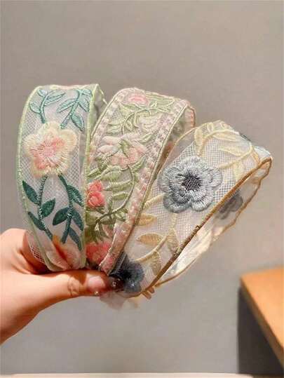 3件/1件装女士优雅百搭刺绣花朵发箍,适合日常、通勤、上学、工作、海滩、派对、节日礼物、波西米亚风、美容、发带、发箍、女士头饰 - 彩色 - 查看 1