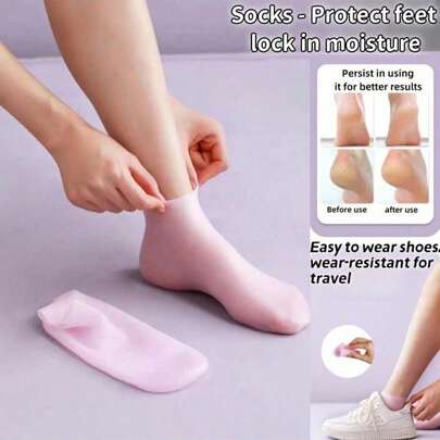 3只/2只/1只装硅胶保湿舒缓袜,高弹力压缩袜,可重复使用芦荟袜,女士防滑凝胶后跟袜,可搭配您喜爱的乳液和面霜使用 - 彩色 - 查看 29
