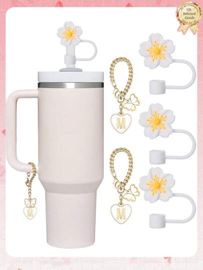 3 件/2 件专为 30/40 盎司杯子设计的配件 - 白色杯字母标记和硅胶马蹄莲吸管盖、硅胶防摔防刮保护套、可重复使用的 10 毫米宽吸管盖、可爱的字母装饰、适用于现代简约玻璃杯 - 白色 - 查看 3
