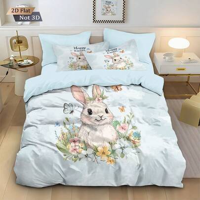 3件套复活节兔子数码印花被套套装,包含1个被套和2个枕套,不含填充物,柔软舒适,涤纶材质,适合家居装饰,是送给男孩、女孩、青少年的礼物,四季皆宜。 - 6401+SJT+C - 查看 1