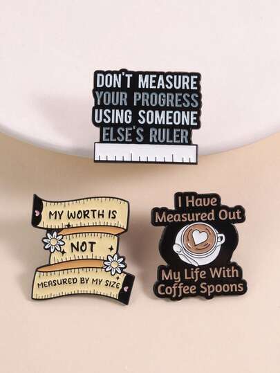 3件套疗愈艺术极简珐琅胸针套装,柔和雏菊心形尺,咖啡拿铁图案,男女皆宜,舒缓压力礼物