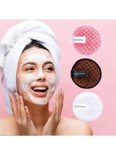 3 件套卸妆粉扑,柔软亲肤面巾,清洁工具,方便旅行携带 - 彩色 - 查看 10