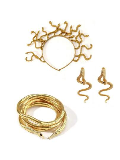 3件套美杜莎蛇头饰配饰套装,包括蛇项链、蛇耳环和蛇形首饰套装,适合万圣节派对 - 蛇 - 查看 3