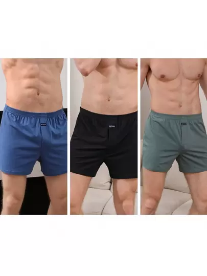 3入組男士短褲,寬鬆休閒風格適合家居穿著和戶外穿著 - 彩色 - 查看 1