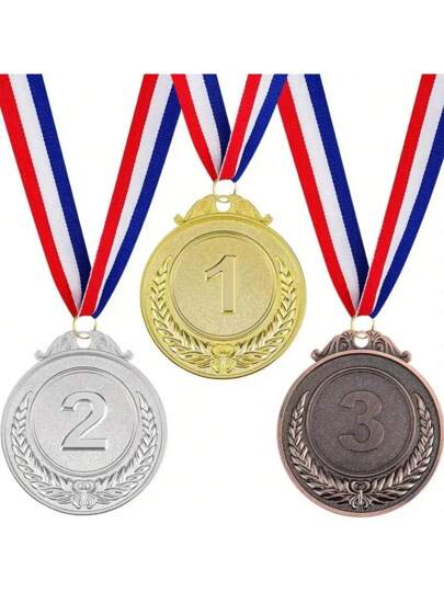 3 件金属效果一等奖、二等奖、三等奖奖牌,带颈绳 - 适用于体育比赛、课堂游戏和办公室活动 - 彩色 - 查看 3