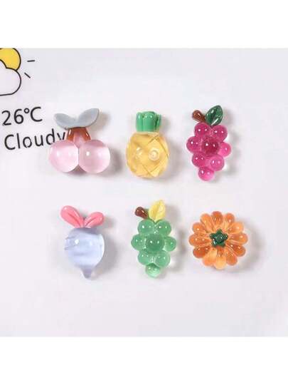3入組混合透明水果系列樹脂diy珠寶配件,適用於奶油膠手機殼材料,包括櫻桃、菠蘿、南瓜 - 彩色 - 查看 6