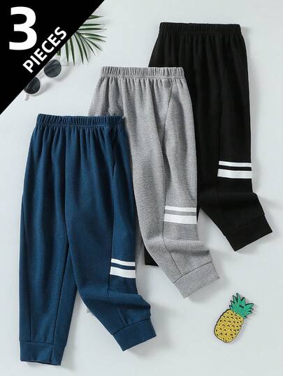 3条装儿童男童休闲抽绳裤,轻便日常裤,适合4-12岁儿童,春夏款 - 彩色 - 查看 3