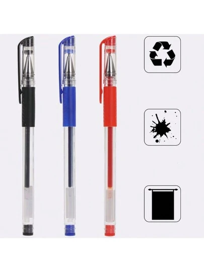 3入組隨機顏色彈頭中性筆,簡單實用的寫字筆,適用於辦公室和學校 - 彩色 - 查看 1