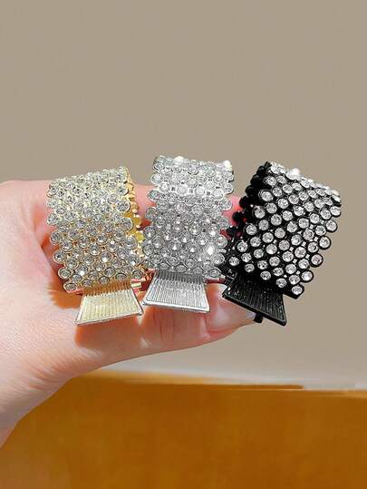 3个水钻高马尾发圈夹,女士发饰,2026新款闪亮波西米亚金属爪,适合春、夏、秋、冬四季佩戴 - 彩色 - 查看 1