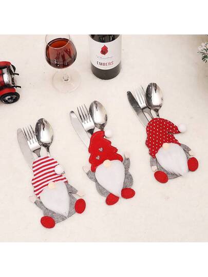 3入組卡通無臉人娃娃餐具袋,聖誕節裝飾、廚房/桌面裝飾道具,創意3d設計 - 彩色 - 查看 1