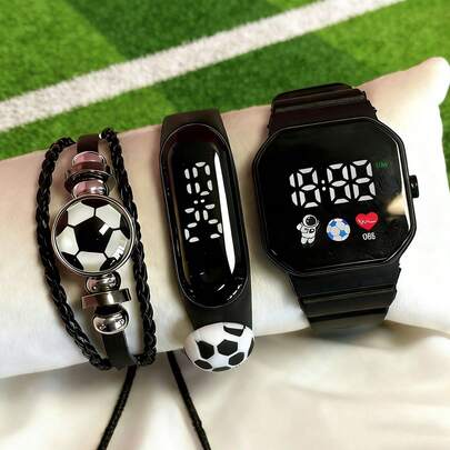 3件套时尚男女通用宇航员、足球、心形LED数字手表,搭配足球图案表带,适合日常佩戴和圣诞节/节日礼物