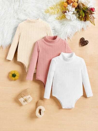 3件套新生女宝宝休闲舒适纯色翻领连体衣,秋冬季时尚套装