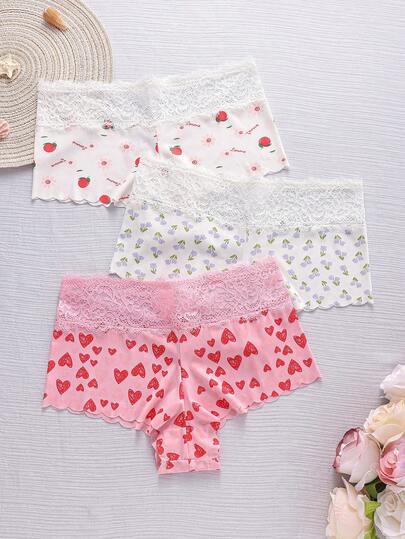 3件套女士印花蕾丝边平角内裤 - 彩色 - 查看 1