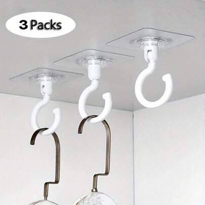 3个装旋转吊钩 - 塑料材质,壁挂式,安装简便,360°旋转,适用于墙壁和天花板 - A - 查看 6