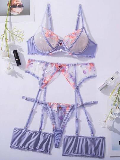 3件套女士性感网纱透视吊带背心套装