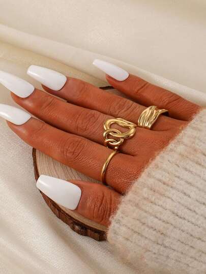 3入組/套鏤空戒指 - 金黃色 - 查看 3