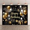 1p 黑色和金色生日背景横幅,涤纶材质,多种尺寸,黑色和金色气球生日,气球和烟花设计,四季派对装饰,大型壁挂庆祝,适合派对,室内外花园装饰