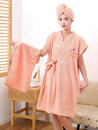 3入組家庭浴袍,浴巾和吸髮帽,菠蘿珊瑚絨柔軟舒適交叉綁帶長袍和吸髮帽,客廳家居臥室浴室裝飾,旅行用品,婚禮,派對,生日,男士媽媽爸爸朋友禮物,新年,配件,有趣的禮物 - 粉色 - 查看 6
