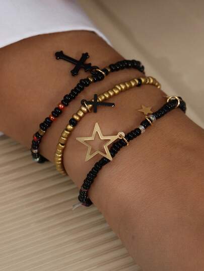 3 件套星形十字珠手链,适合女性日常佩戴 - 彩色 - 查看 3